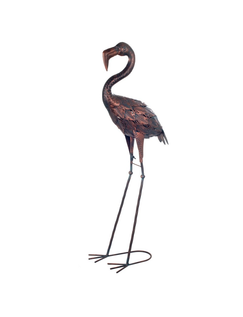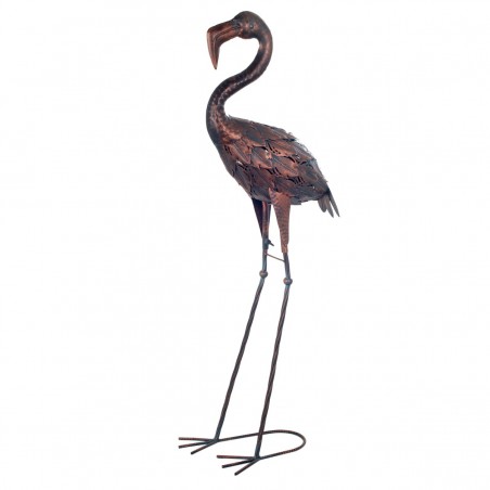 Grand FLAMANT Rose statue en métal de 87cm couleur Gris cuivré