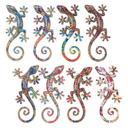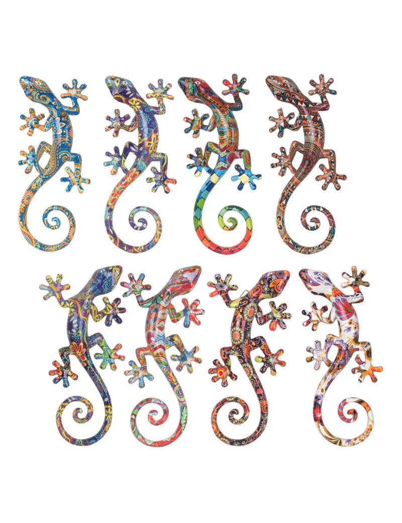 Un lot de 8 Geckos lézards décoration murale à suspendre, coloré en polyrésine brillante de 20cm de longueur chacun.