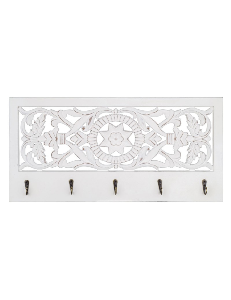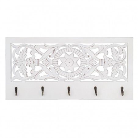Patère 60cm Décoration Murale en Bois Blanc en relief avec 5 crochets Métal