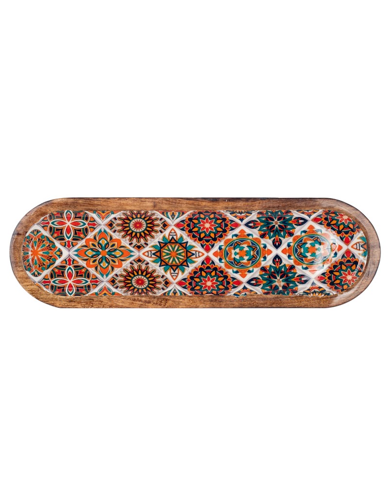 Décoration de Table, un Plateau en Bois de Service Présentation tout en longueur 45cm Ovale, Design Carreau de ciment.