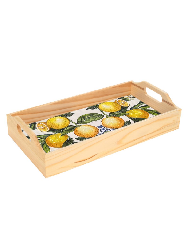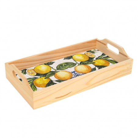 PLATEAU rectangulaire en Bois et Céramique Décoration Citrons 31cm