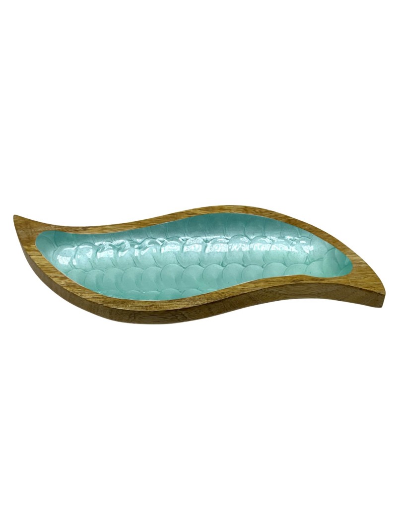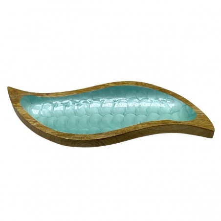 Plateau Vide Poche en Bois de 32cm en forme de Vague Bleu Turquoise