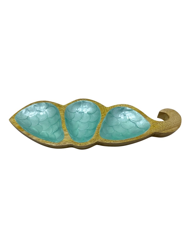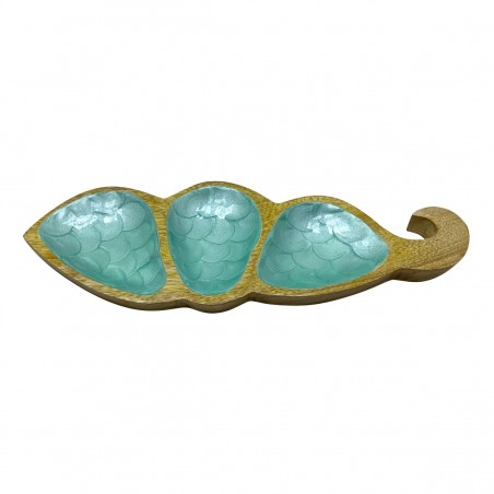 Plateau de Service présentation en Bois en forme de coquillage à 3 compartiments