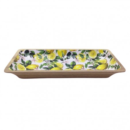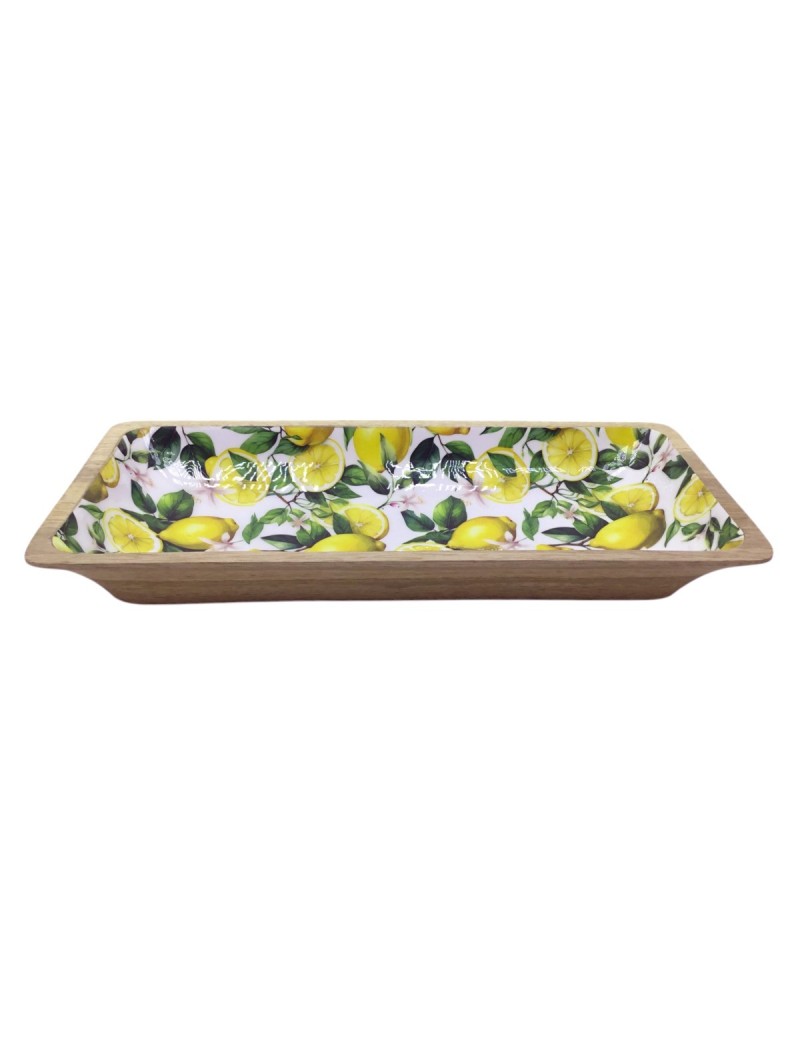 Décoration collection Méditerranée, Plateau de présentation rectangulaire en Bois de 33cm ornement Citrons.