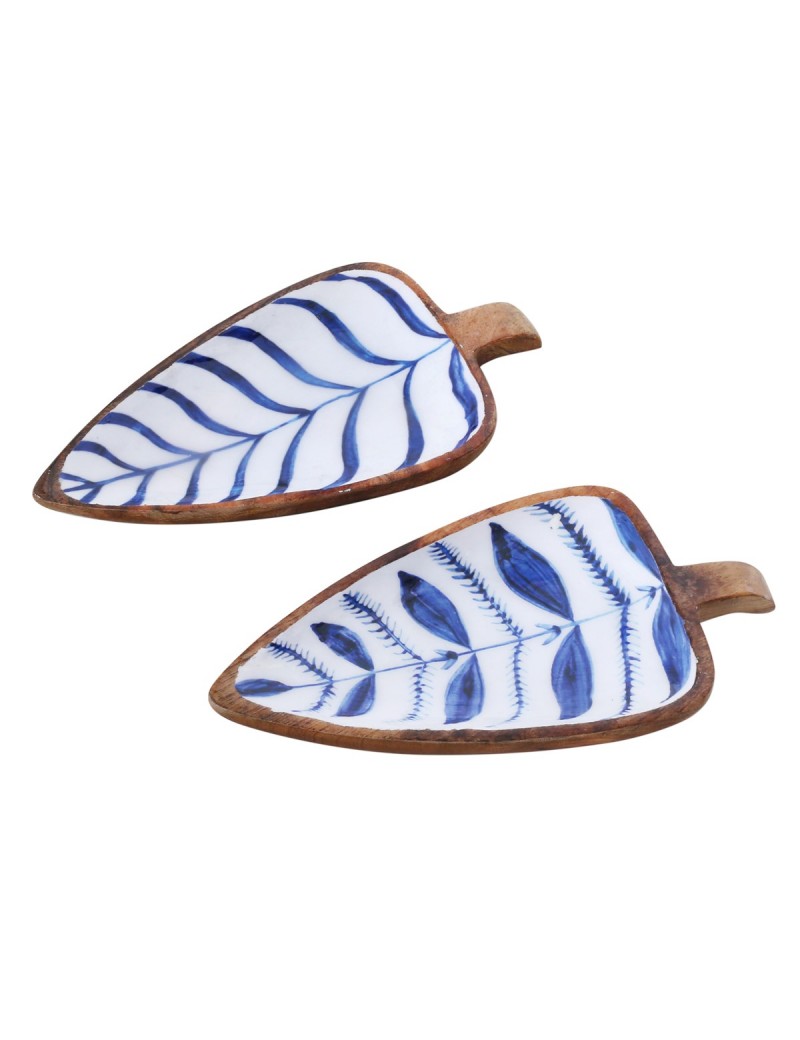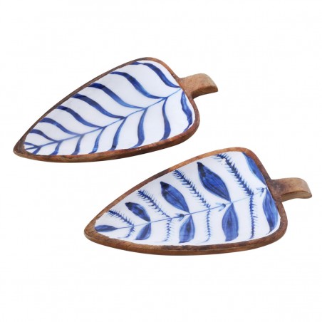 Décoration Art de la Table, Plateau en Bois en forme de Feuille Design Marine et Blanc.