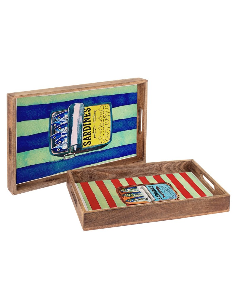 Plateaux de Service en Bois 43cm Set de 2 Décoration Sardines rétro