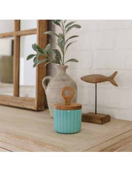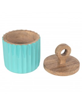 Boite ronde en Bois de 16cm couleur été Turquoise