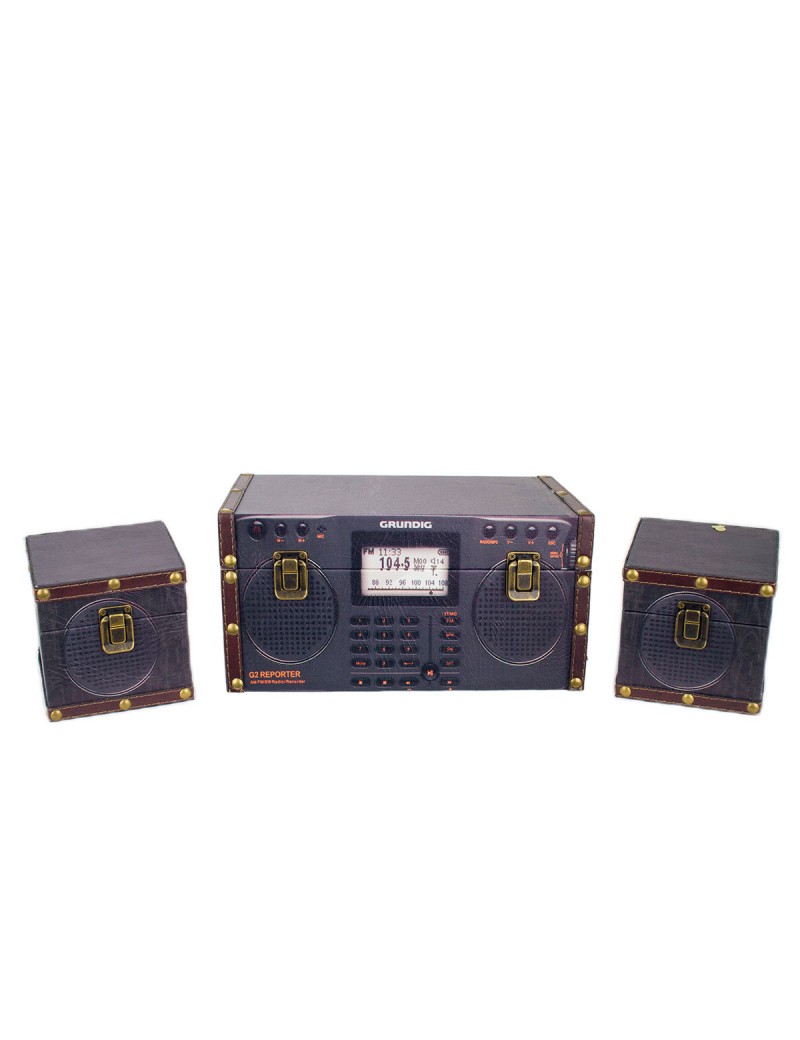 Boite de Rangement Set de 3 Design Chaine Hi-Fi Rétro et enceintes couleur Gris