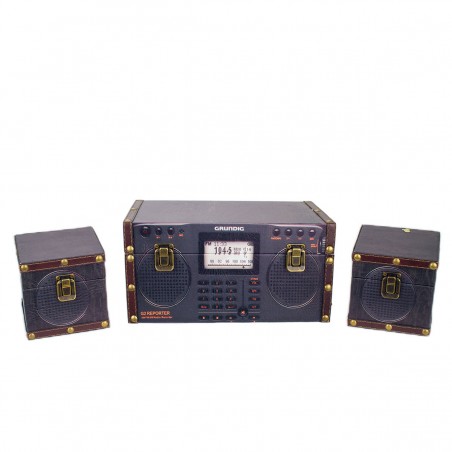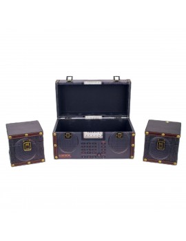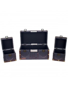 Un Lot de 3 Boites de rangement stockage avec fermeture métal au Design Hi-Fi Vintage avec 2 enceintes de couleur Gris Noir.