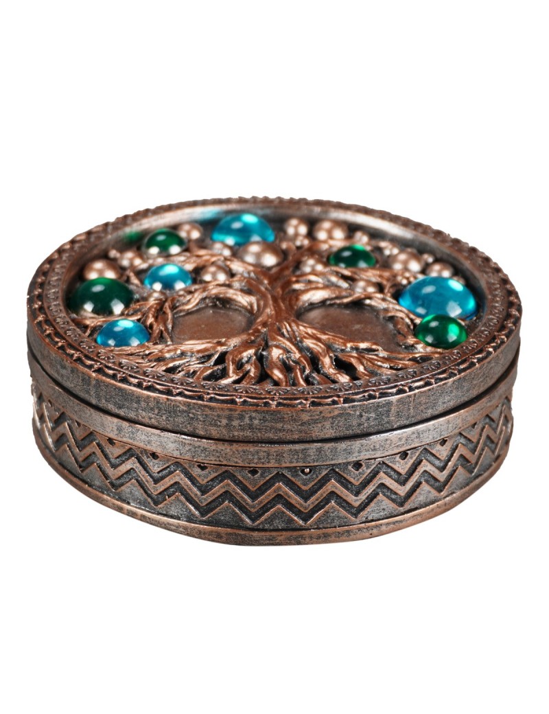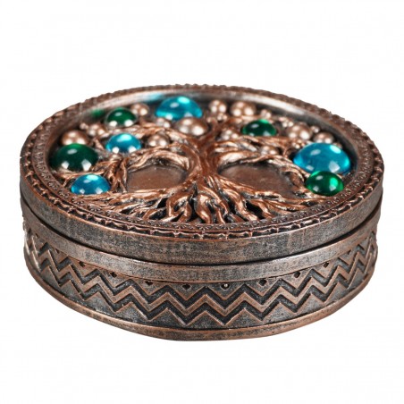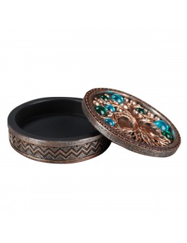 Petite Boite ronde Décoration Arbre de vie 10cm couleur Brun cuivré