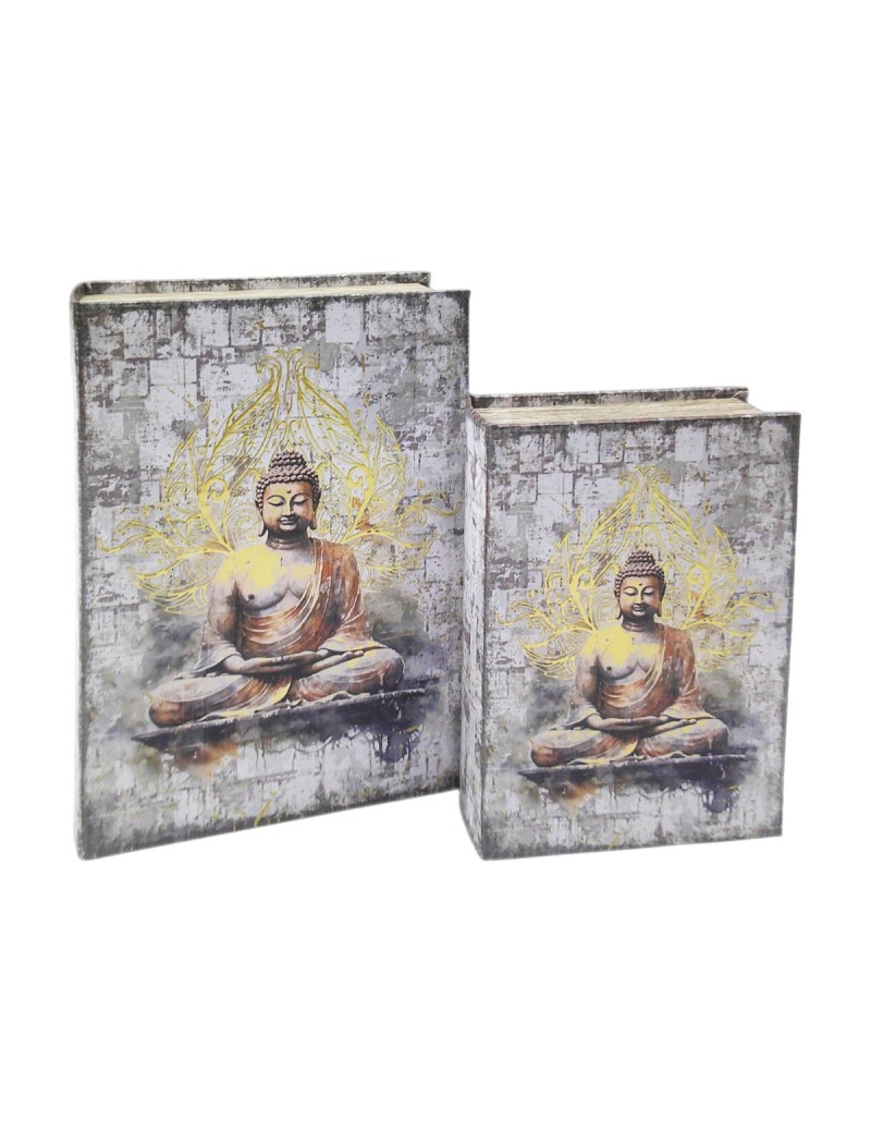Boite en forme de Livre Set de 2 Décoration Bouddha couleur Gris et Doré