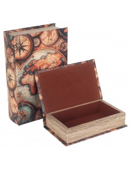 Boite forme de Livre Set de 2 Décoration Carte du Monde Boussole 27cm