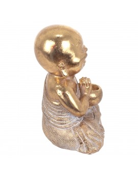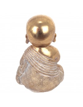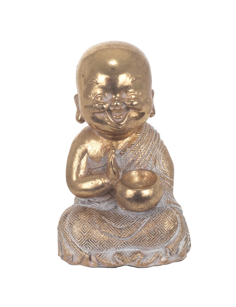 Moine Bouddha Rieur Statuette Décoration couleur Or de 14cm