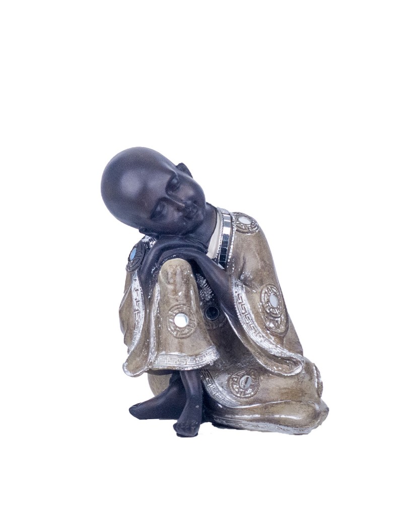MOINE rêveur Statue Décoration ZEN couleur Sable et Strass