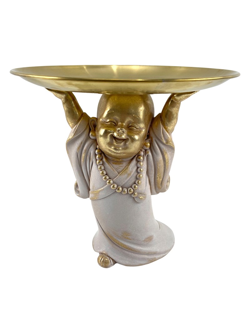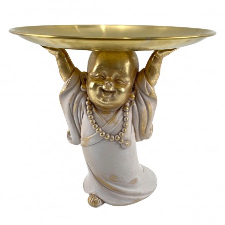 Décoration d'Intérieur utile, une statue vide poche de Moine portant un plateau couleur Dorée.