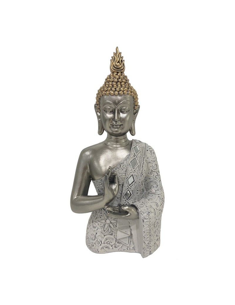 BOUDDHA Statue Décoration ZEN Buste couleur Gris argenté et doré 35cm