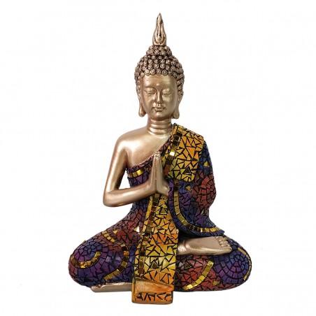 BOUDDHA Statue Décoration Zen méditation 21cm couleur Doré Violet