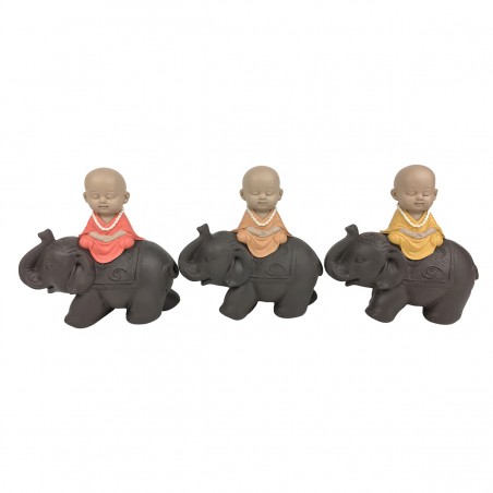 MOINE Bouddha Statue Décoration sur un éléphant 13cm couleur Chaude