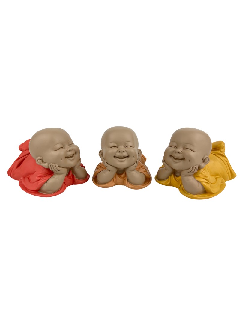 MOINE Bouddha rieur allongé Statue Décoration en couleur de 15cm