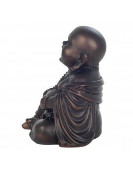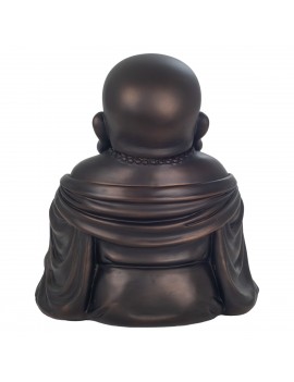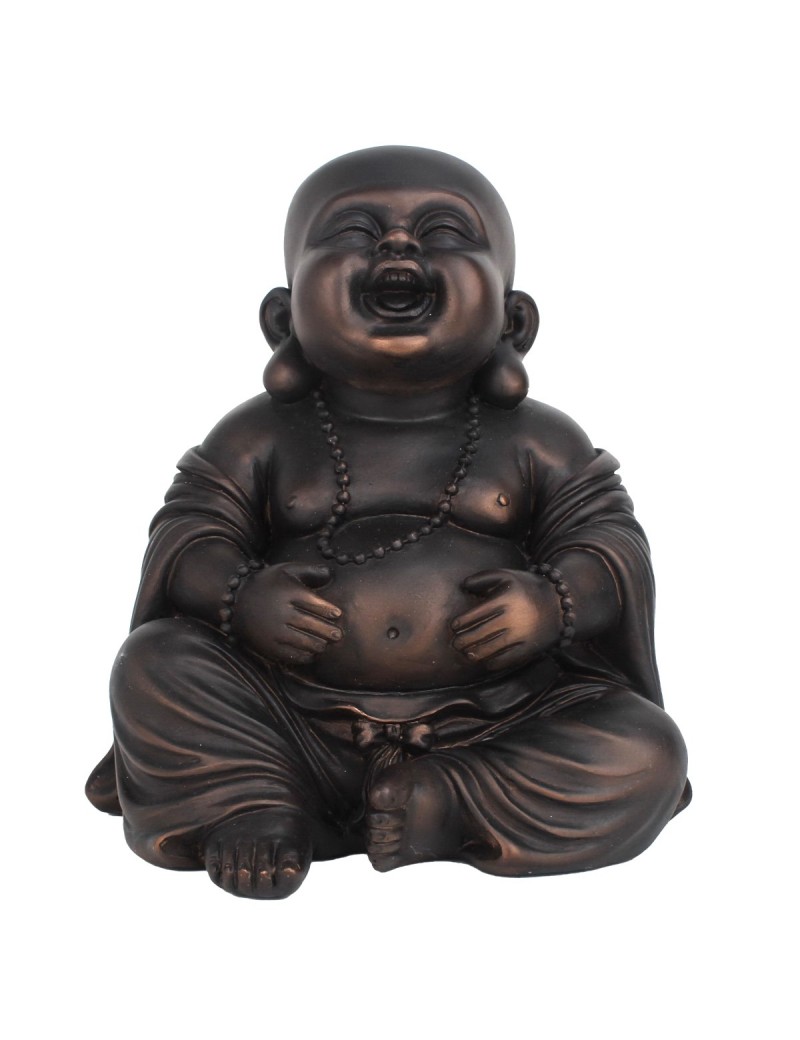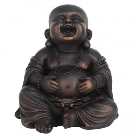 Statue Décoration Bouddha rieur assis, Belle couleur Brun reflet cuivré d'une hauteur de 19cm.