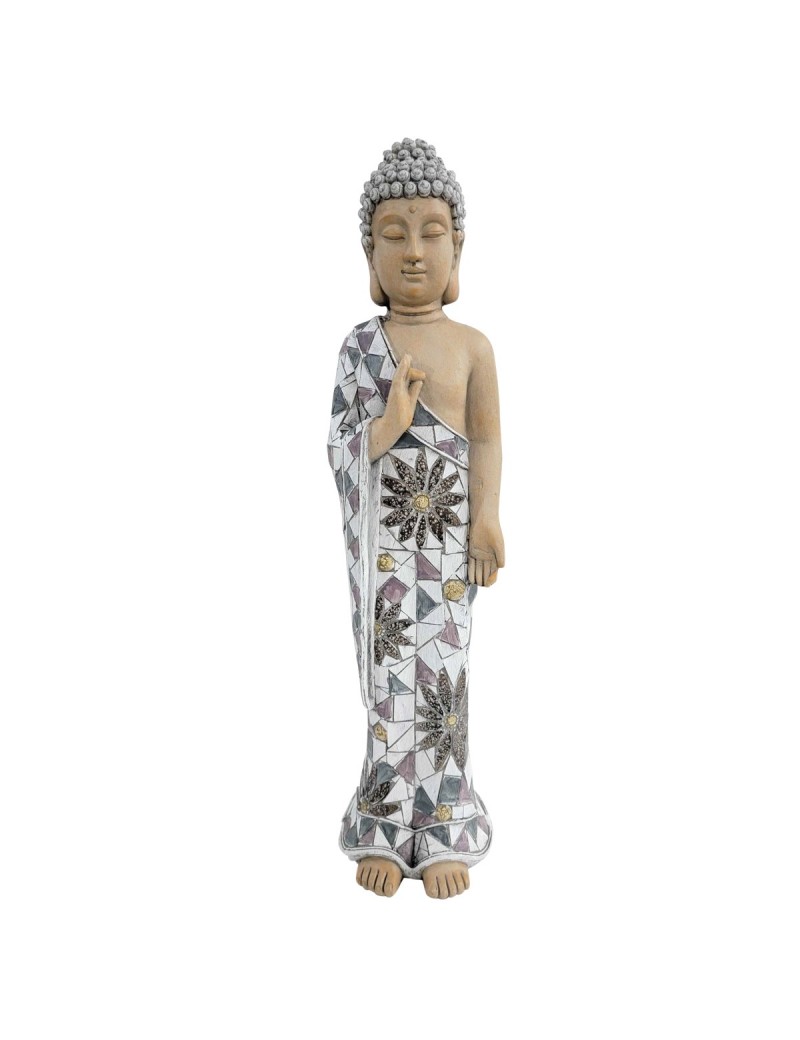 Décoration d'Extérieur Zen, une statue de Bouddha debout d'une hauteur de 67cm couleur Blanc Gris.