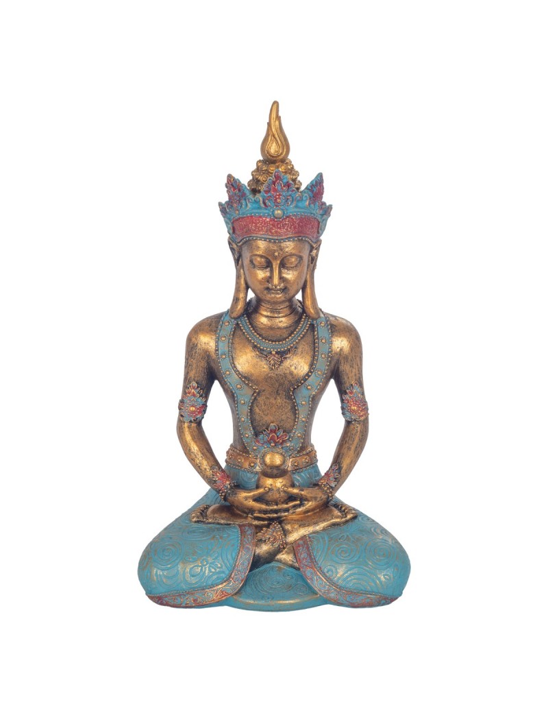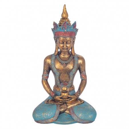 Statue Décoration collection Zen Méditation, Bouddha assis de 35cm couleur dorée effet vieilli et Bleu Turquoise.