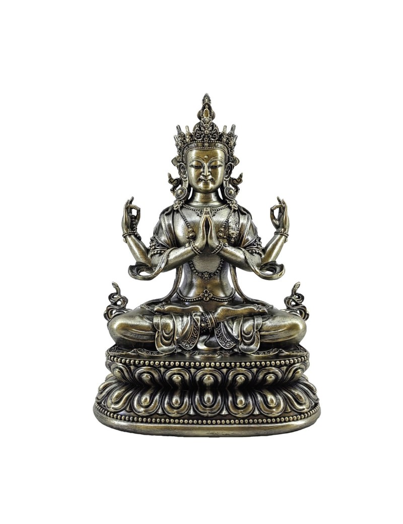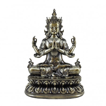 BOUDDHA à 4 bras assis Statue Décoration 31cm couleur Argent Tchenrézi