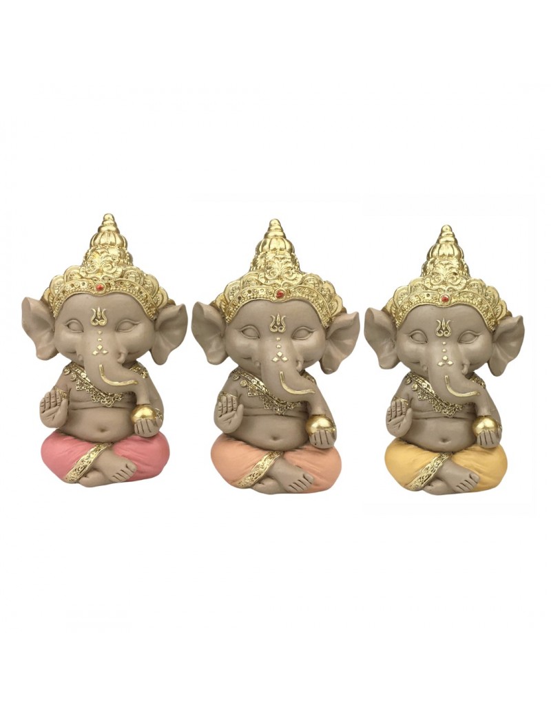 Statue Décoration Zen Ganesh assis couleur dorée et pastel 13cm