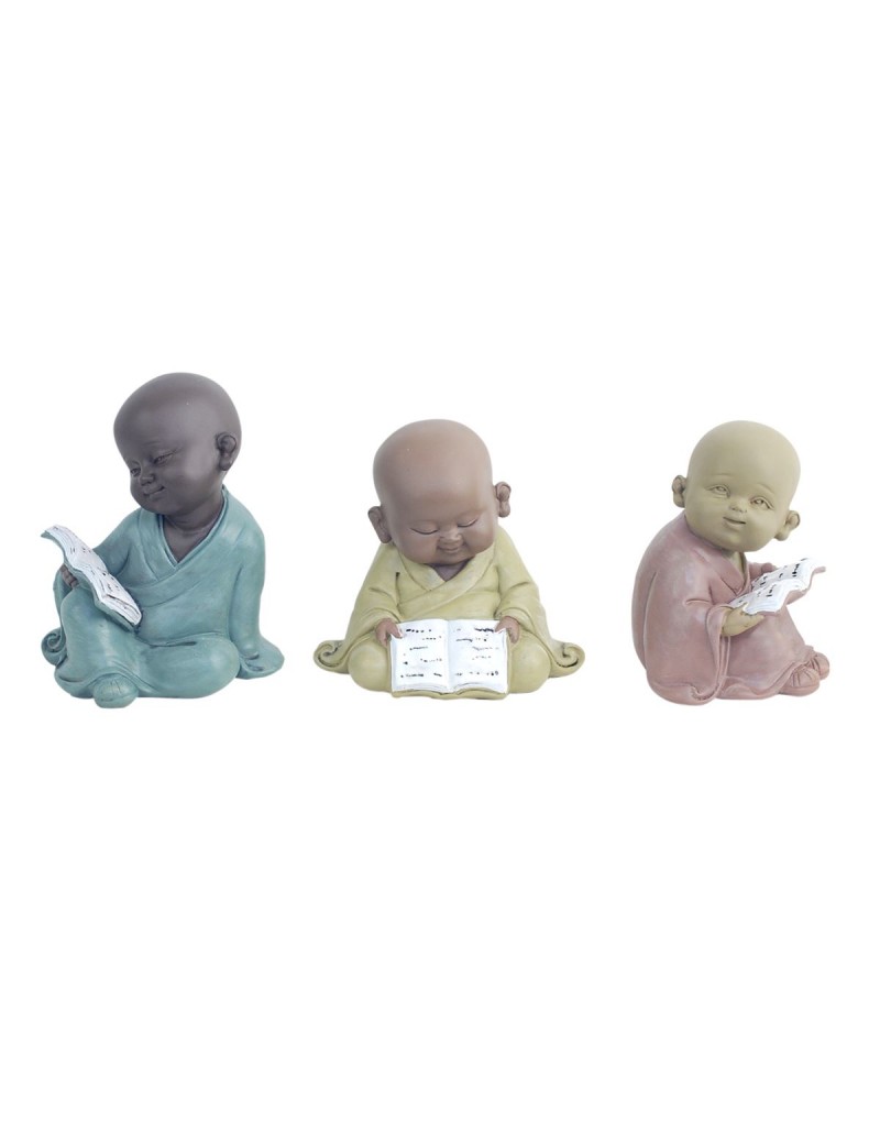 Statuette Décoration Moine Bouddhiste lecteur en Polyrésine 3 couleurs pastels et postures au choix.