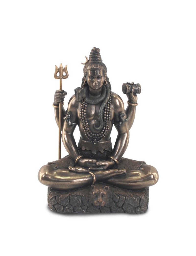 Une statue neuve du dieu SHIVA en YOGI, décoration en polyrésine couleur bronze laiton, porte bonheur.