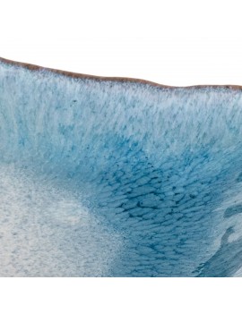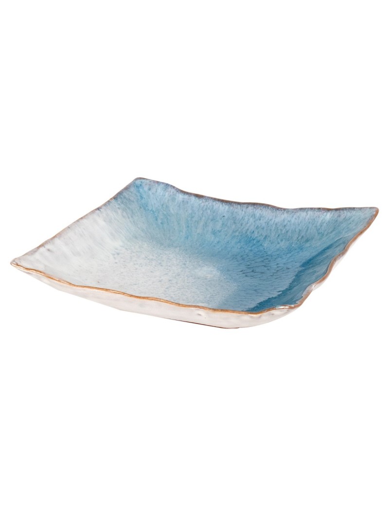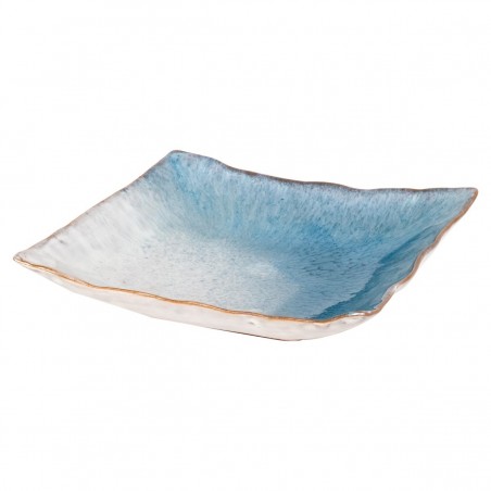 Plateau petit carré en Grés de 13cm couleur nacré et Bleu