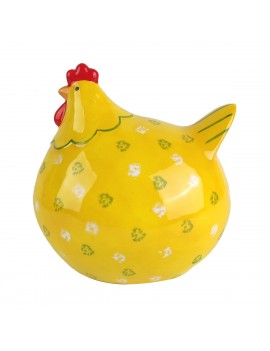 POULE Jaune en porcelaine tout en rondeur de 13cm
