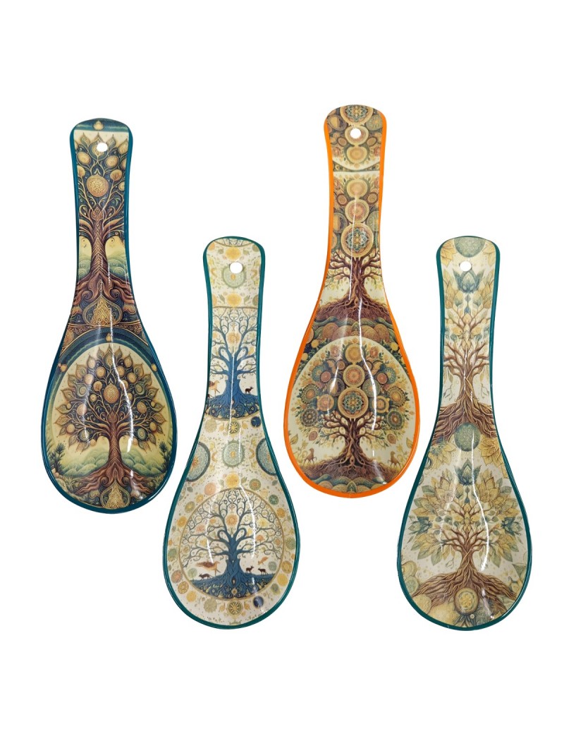 Repose Porte Cuillère en Céramique Décoration Arbre de Vie de 26cm