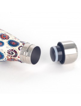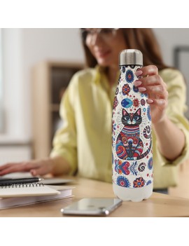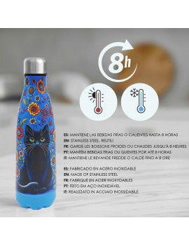 Décoration Cadeau collection Chat, Bouteille en acier inoxydable avec Bouchon Design Original et fleurs 26cm.