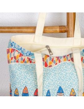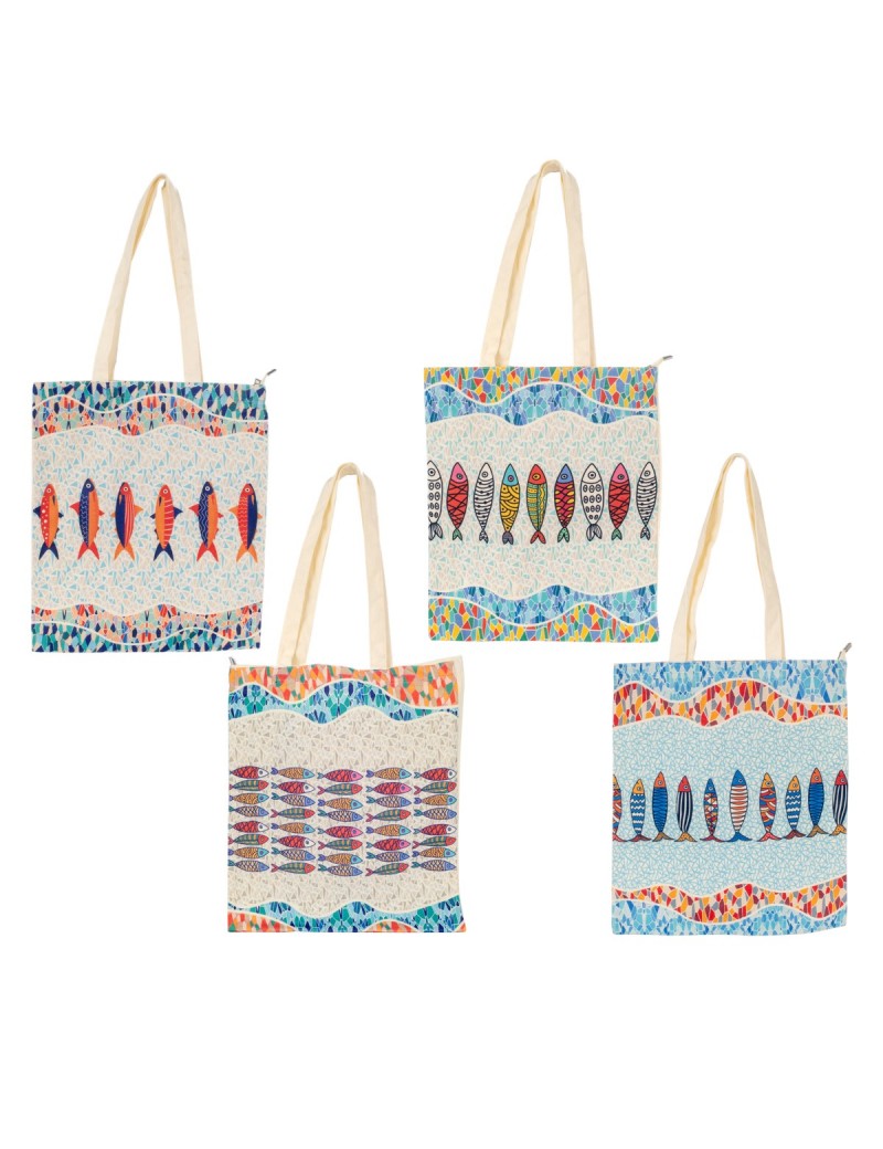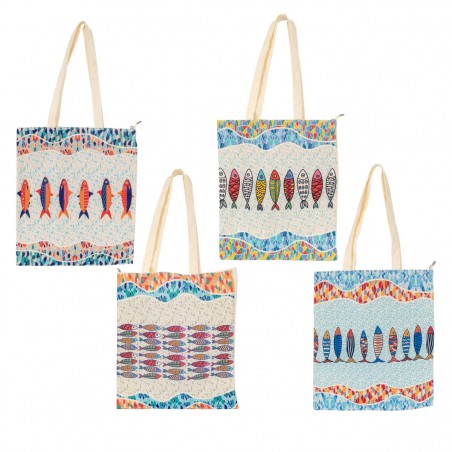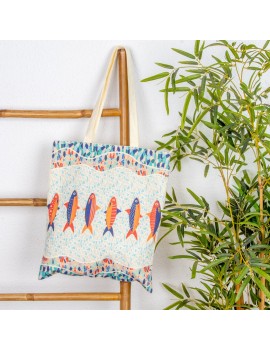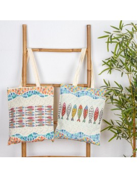 SAC en TOILE Décoration POISSON en couleur 40x36cm