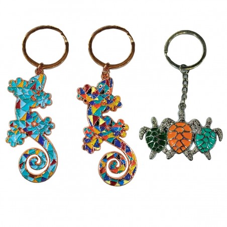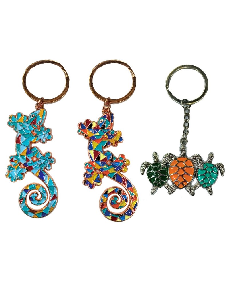 Porte clés en métal et résine Gecko et Tortue de Mer 4cm