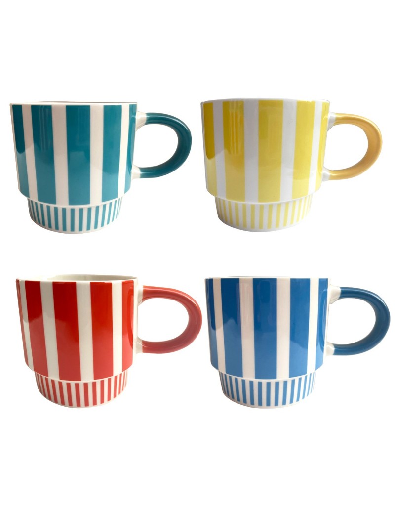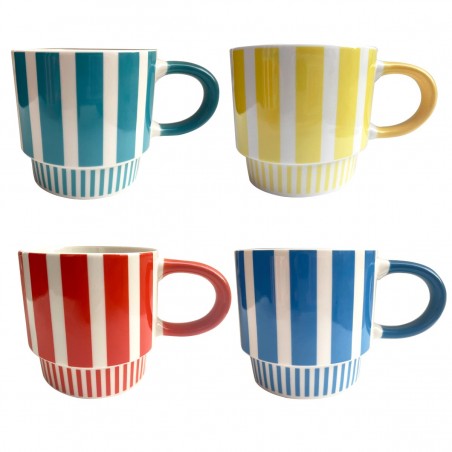 Mug en couleur rayé en céramique de 14cm Décoration Vacances d'été.