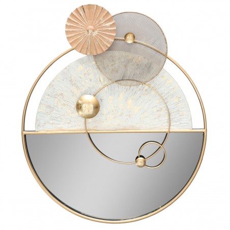Décoration murale en Métal Abstrait Cercles couleur dorée et gris de 76cm