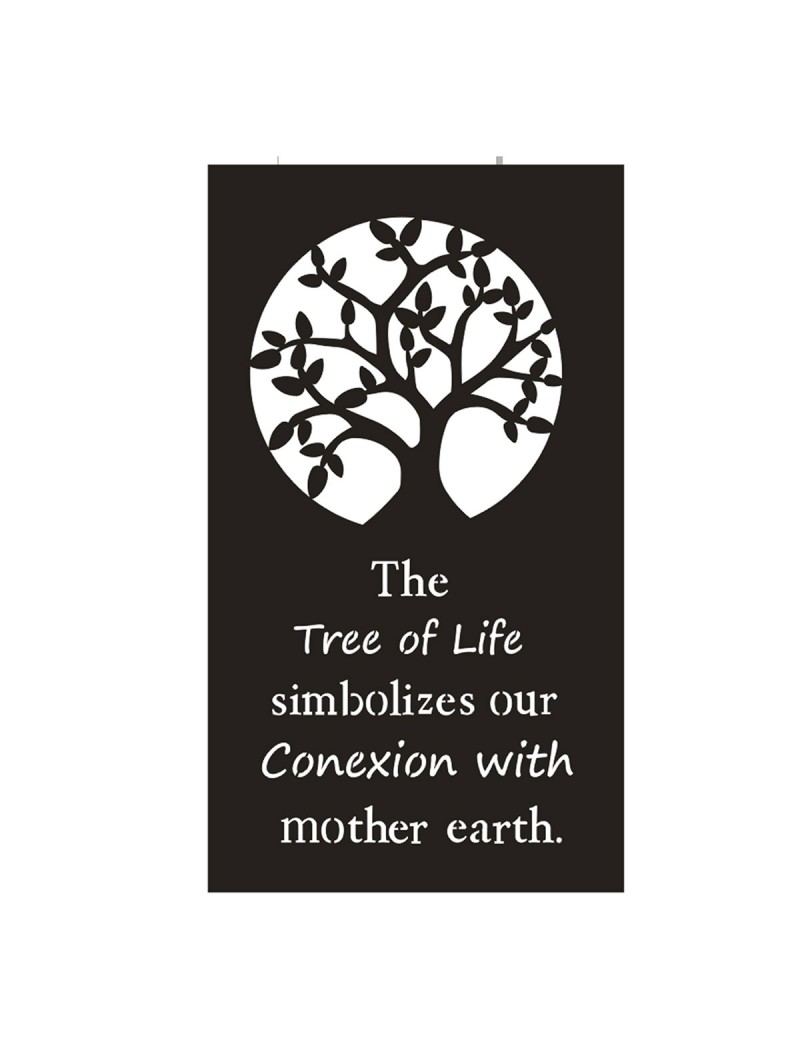 Décoration murale Arbre de Vie écritures en métal racine terre mère, Applique de 70x40cm à suspendre.