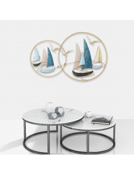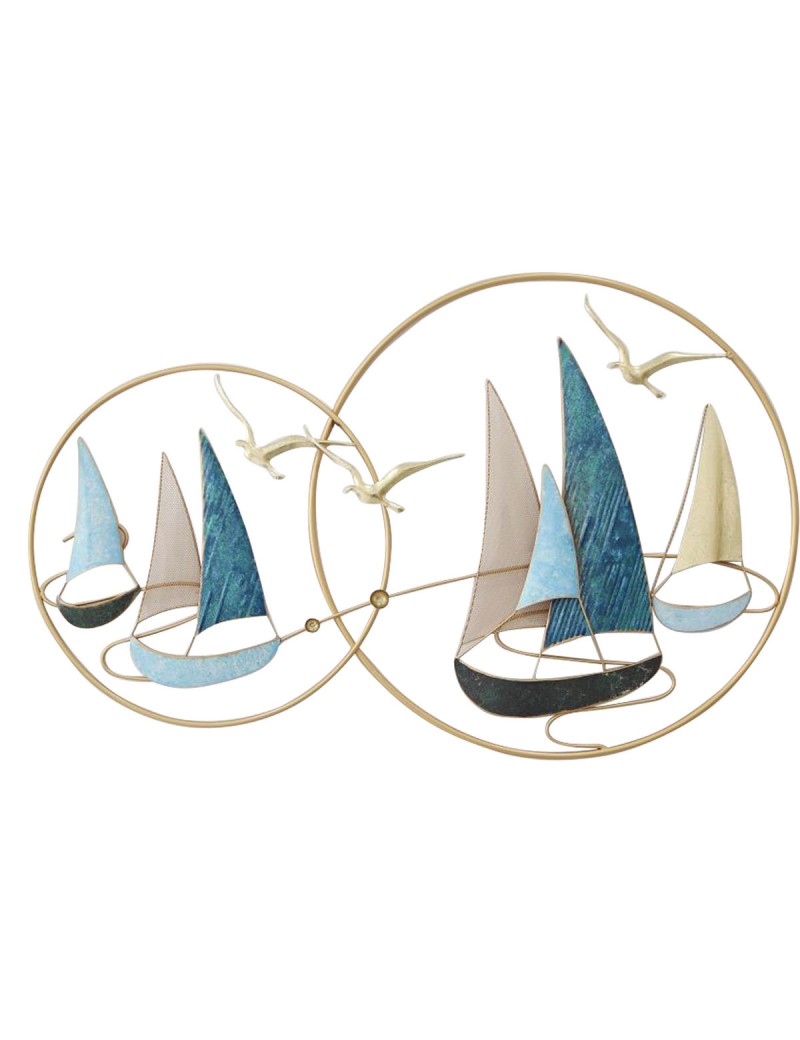 Décoration murale Bateaux Voiliers en métal couleur Bleu et doré de 99cm