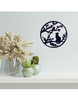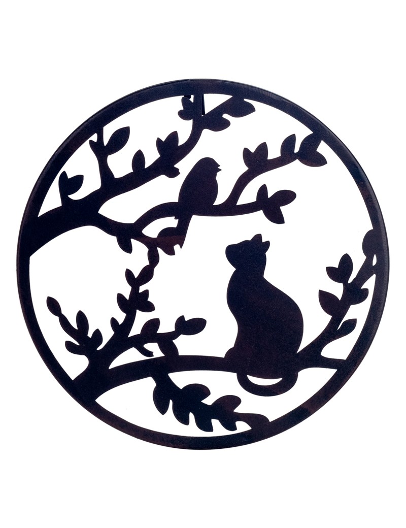 Décoration murale Applique ronde 30cm en métal Arbre branche Chat Oiseau