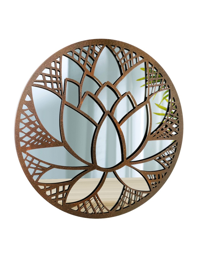 MIROIR mural rond en Métal 50cm à suspendre Design Fleur de Lotus