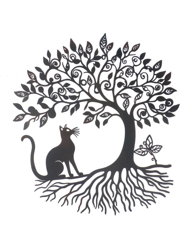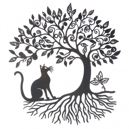 Décoration murale en métal ARBRE de Vie avec 1 Chat 50x46cm