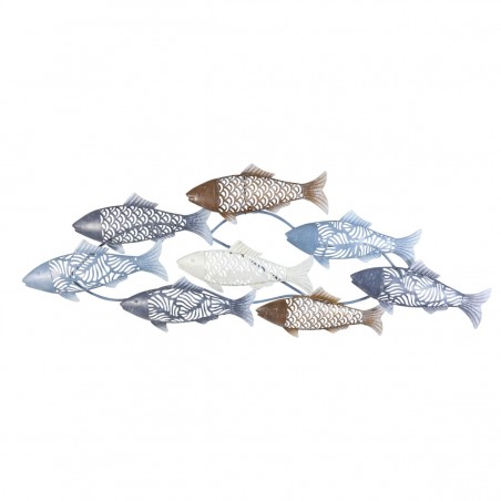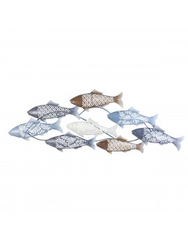 Décoration murale Bord de Mer Océan, Poissons en métal couleur Bleu, Brun à suspendre de 87cm.