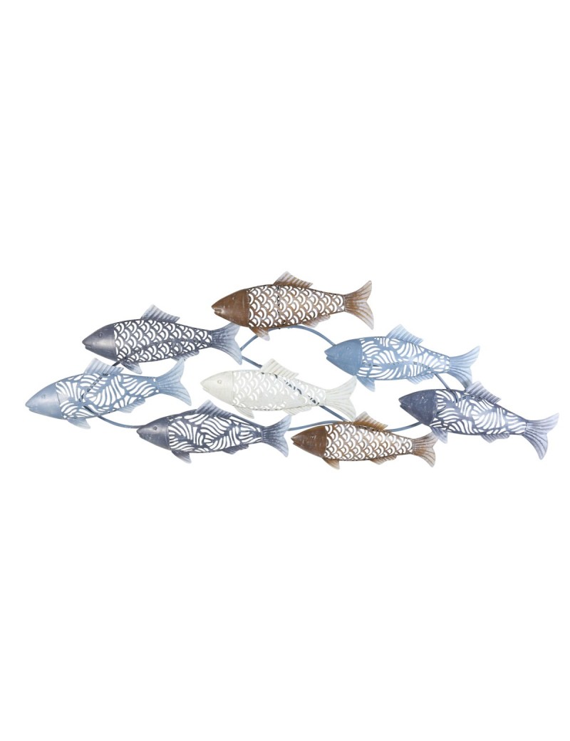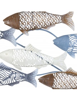 Décoration murale POISSONS en métal Mer Océan de 87cm Bleu Brun