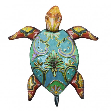 TORTUE de Mer en couleur Décoration murale en métal Motif Ethnique 25cm