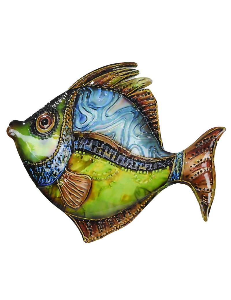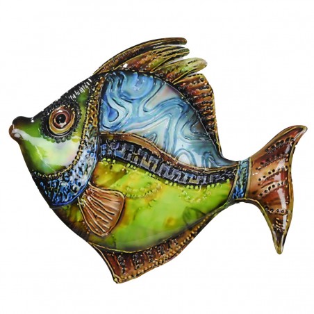 Décoration murale Poisson en métal à suspendre 35cm vert et Bleu