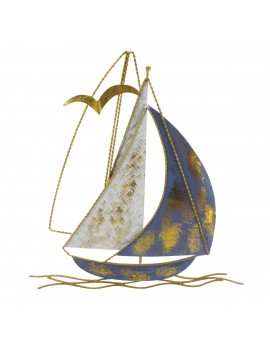 Décoration murale Bateau Voilier en métal couleur Marine Or effet vieilli