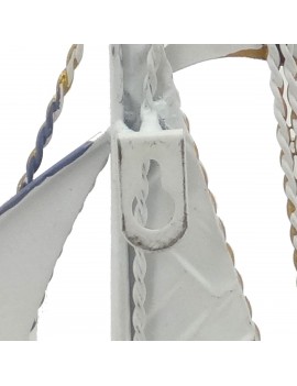 Bateau Voilier Décoration murale à suspendre en Métal de 39cm, couleur Bleu Marine doré écru avec effet vieilli.