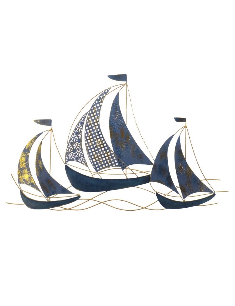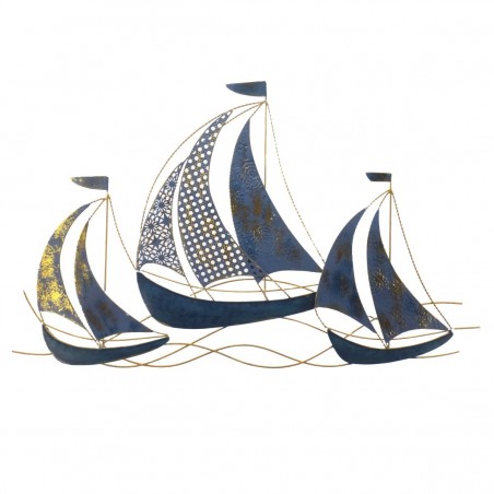 BATEAUX Voiliers Bleu marine et Or Décoration murale Mer Océan en métal de 85cm